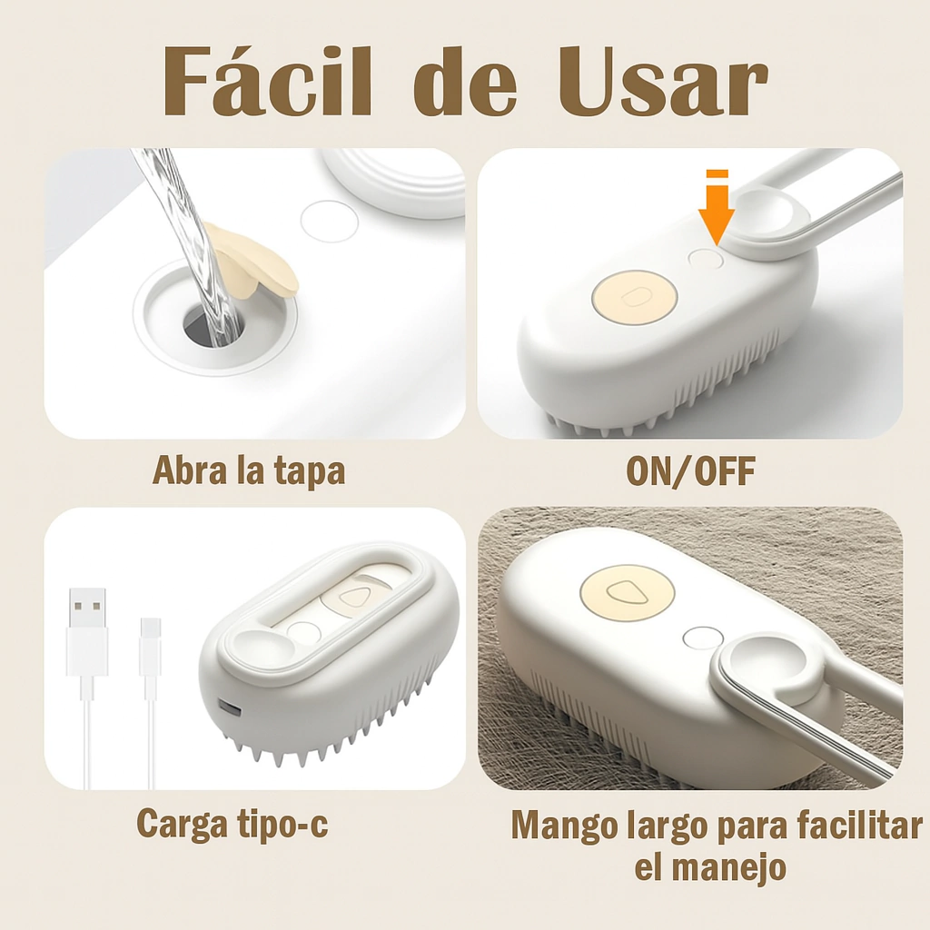 🧴 Depósito integrado: Agregá agua, shampoo o un líquido sin enjuague y rociá directamente mientras cepillás.
