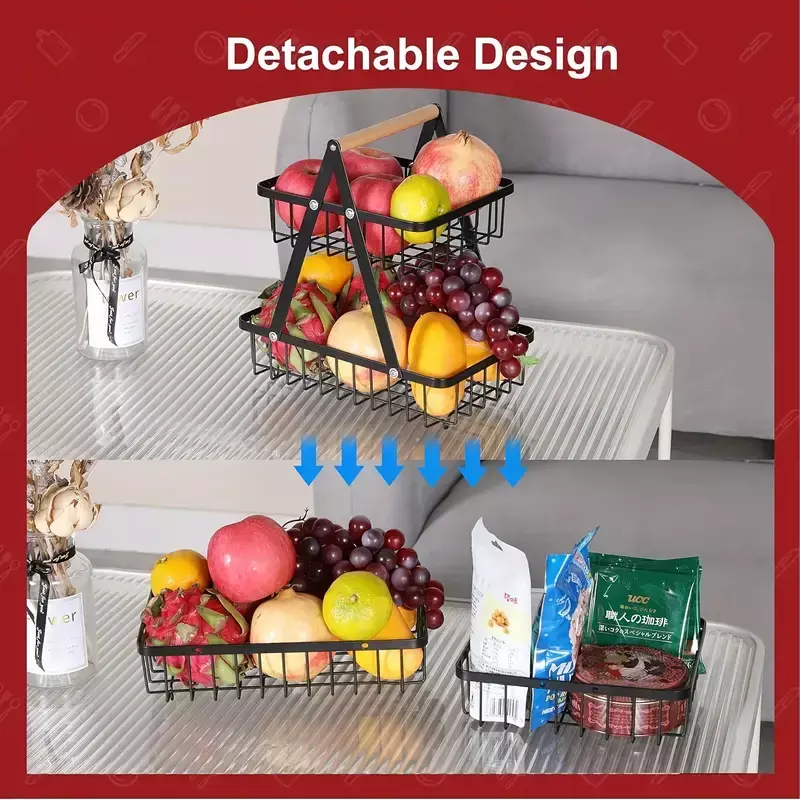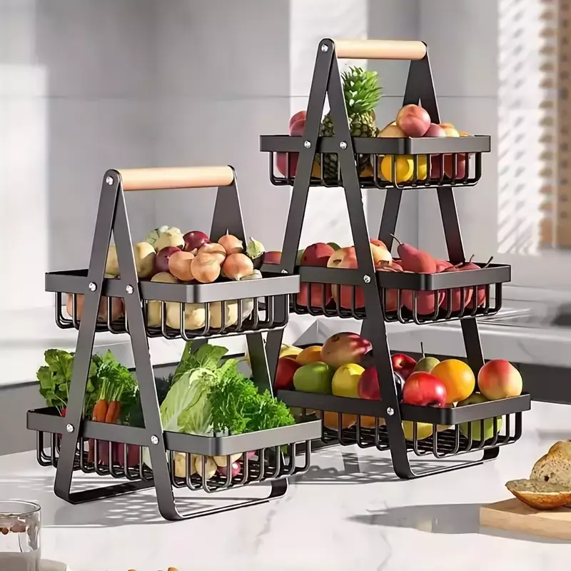 El Frutero Metálico de 2 Niveles combina diseño y funcionalidad, permitiéndote organizar frutas, verduras o snacks de forma ordenada y elegante. Su estructura metálica resistente garantiza estabilidad, mientras que su diseño de dos pisos optimiza el espacio en tu cocina o mesa.