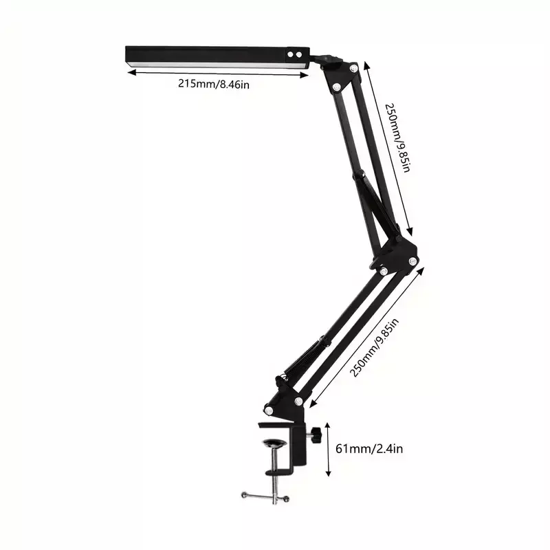 Iluminá tu espacio de trabajo o estudio con esta lámpara de escritorio LED de brazo largo. Su diseño articulado y plegable permite ajustarla a tu comodidad mientras cuida tus ojos con luz suave y uniforme. Con alimentación por USB, es práctica y portátil — ideal para escritorios, camas o salas de lectura.