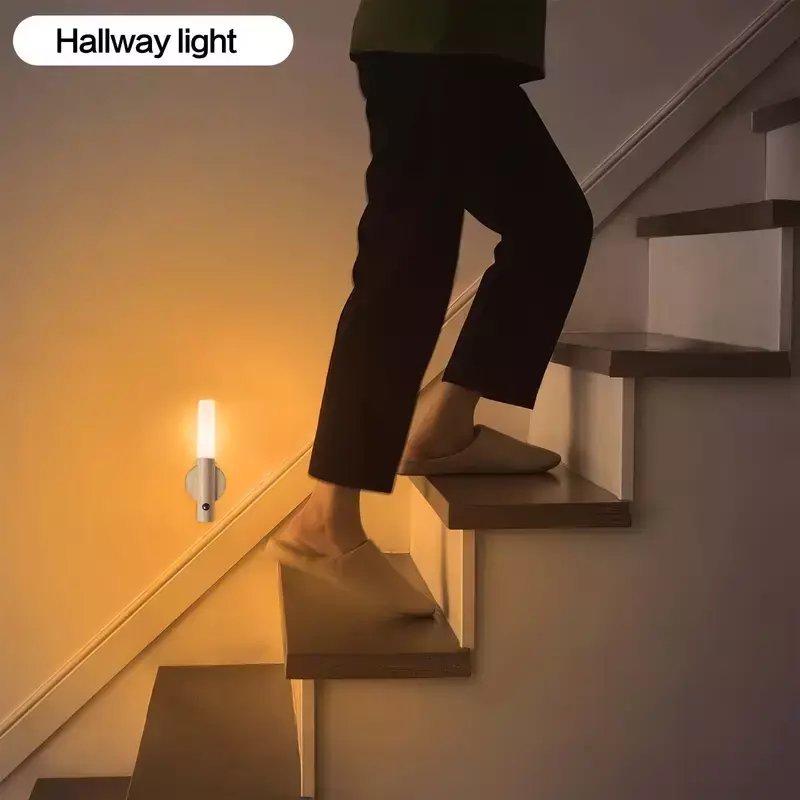 Esta lámpara LED con sensor de movimiento se enciende automáticamente al detectar presencia y ofrece una luz cálida y suave, ideal para dormitorio, pasillo, placard o baño.