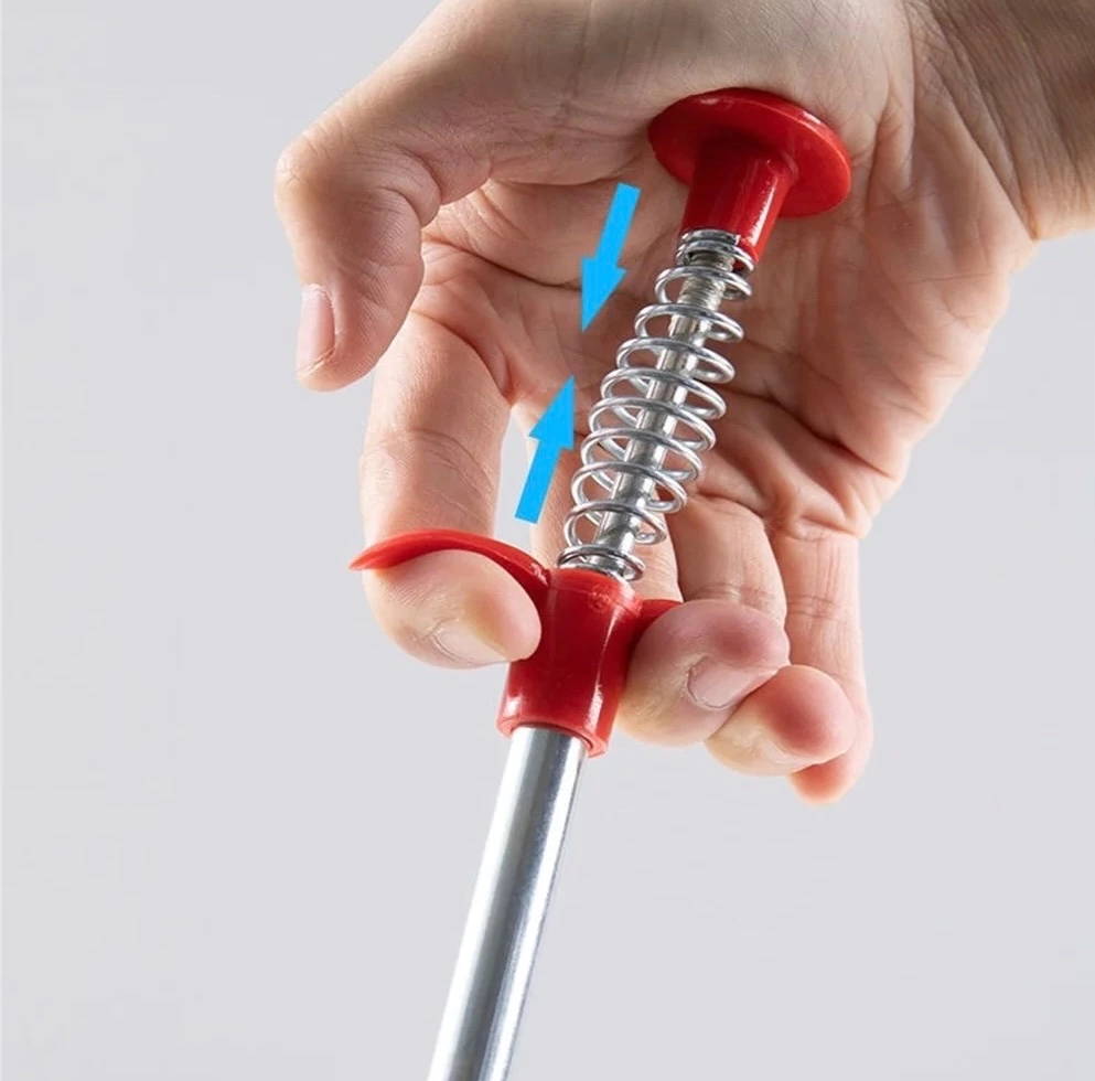 Práctico y muy util accesorio destraba caños dotado de una pinza en su punta, ideal para agarrar cualquier objeto que obstruya las cañerías del baño, ducha, cocina, inodoro, y todo tipo de caños. De fácil uso gracias a su gatillo, solo basta con apretar para liberar la pinza y soltar para su agarre. Fabricado en acero.