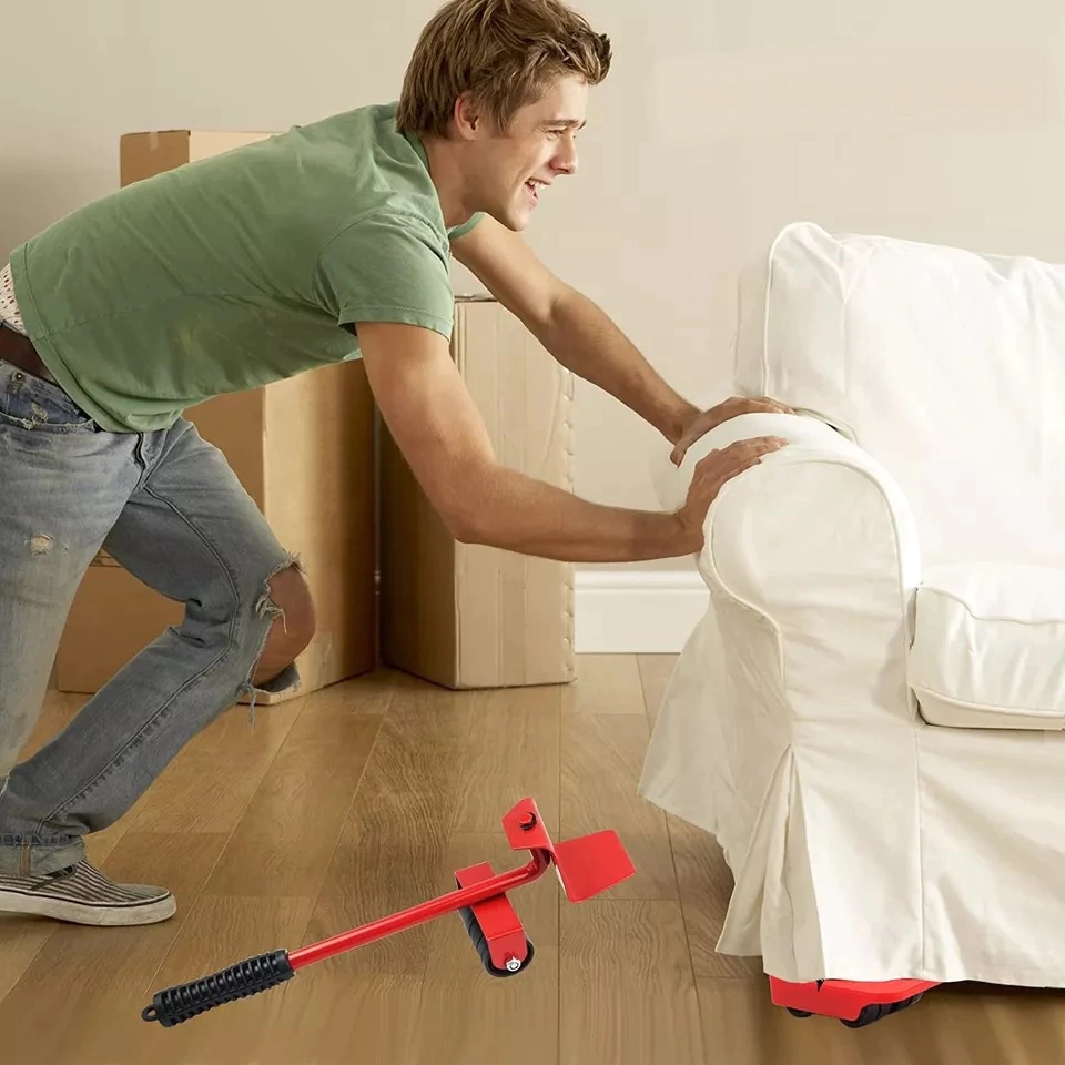 Dejá de hacer esfuerzo y correr riesgo de lesiones con este práctico y novedoso producto que te permitirá levantar y desplazar fácilmente todos los muebles pesados y voluminosos. Dotado de almohadillas giratorias (360 grados) que se ajustan a las patas de los muebles y electrodomesticos de manera firme y segura. Lo podes utilizar para mover sillones, estanterias, mesas, sillas, heladeras, lavarropas, lavavajillas, y muchos otros más. Posee gran capacidad de carga, soporta hasta 150 kg, cuenta con una palanca metalica, 4 soportes con ruedas y cabezal movil.